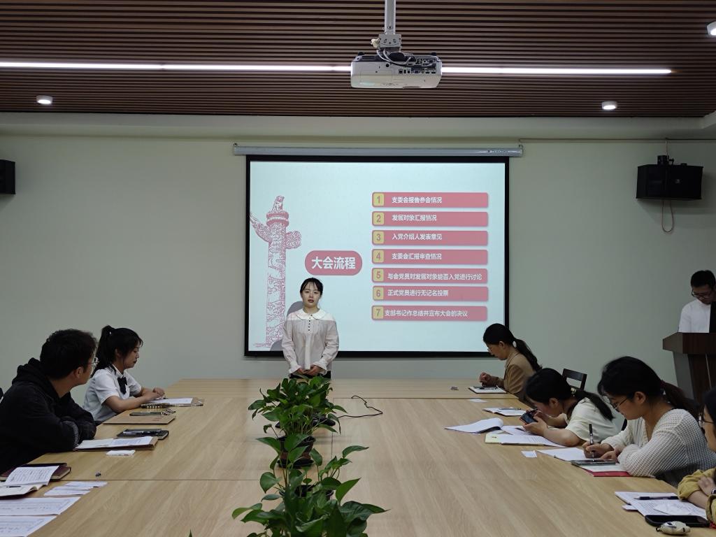 本次会议主要分为五月主题党日活动、接收发展对象为预备党员、预备党员转正三个部分。在五月主题党日活动中,王挪同志带领大家深入学习《习近平给中国农业大学科技小院的同学们的回信》、《关于在全校深入开展学习贯彻习近平新时代中国特色社会主义思想主题教育的实施方案》;支部党员集体诵读《中国共产党章程》第五章党的基层组织相关内容;就作为一名学生党员,谈谈对开展主题教育学习的认识展开讨论。